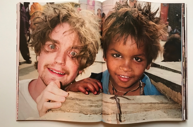 De herrie, de overvolle straten, geluiden en geuren, dat is wat het boek te pakken krijgt, een overdosis aan indrukken, als een overlopende kom soep. Op een van zijn reizen, in 2016, ging zijn vriend en grafisch ontwerper Brian Paul Lamotte met hem mee. Dat was bepalend voor de opmaak die nu op momenten even fragmentarisch is als de indrukken op straat in India. Een pagina is bijna slordig ingedeeld, foto’s overlappen elkaar, alsof ze terloops op tafel neer zijn gelegd. Een pagina vol lachende kinderen met botte afsnijdingen, overrompeld, ja zo voelt het als zo’n groep kinderen om je heen danst.