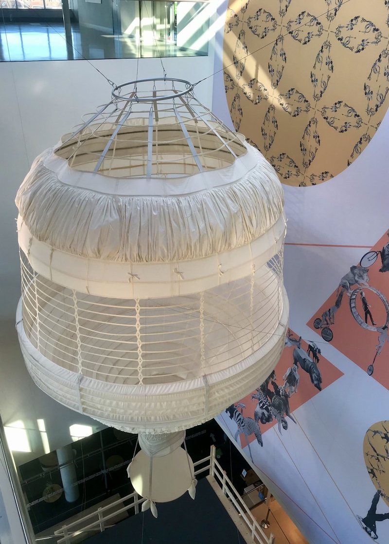Charivari (2019), een installatie geïnspireerd op het circus, aangekondigd als het ‘hoogtepunt’ van de tentoonstelling, stelt als sluitstuk, wellicht door die aankondiging, enigszins teleur. De titel verwijst naar de openingsact van een circus waarin alle artiesten tegelijkertijd hun kunsten vertonen. Op de uitwerking – strakke metalen structuren die aan touwladders en hoepels doen denken, waartussen kostuums zijn geplaatst die zeer instagrammablezijn – is niets aan te merken, maar van de levendigheid, tragiek of wreedheid van een circus valt weinig te bespeuren. Op een tablet bij de ingang zijn archiefbeelden te zien van het sovjet-circus van Bakoe, de hoofdstad van Azerbeidzjan, die meer tot de verbeelding spreken dan de installatie zelf. Door de speakers schalt een Nederlandse stem die inderdaad zo uit een circusvoorstelling lijkt te komen: luid, en in contrast met de steriele installatie ietwat potsierlijk. Flarden tekst over synthetische beren komen voorbij, maar weinig blijft hangen.