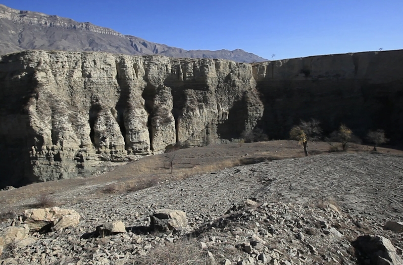 De regio waar waar de werken Tightrope en Walk zijn opgenomen staat in schril contrast met het landschap van Friesland, ruige kale bergen tegenover een vlak groen landschap. In de tentoonstelling plaatsen we de werken Tightrope en Walk samen in zaal drie. Beide films spelen zich af in het ruige onherbergzame berglandschap, het ene werk is overrompelend spectaculair, waarbij een koorddanser zonder vangnet met schilderijen over een koord tussen 2 bergtoppen loopt, de andere is een ‘simpele’ wandeling van een nietig mens langs de rand van een berg. Een klein tegenover een groot gebaar, cultuur en natuur. “By setting up her works in the dry landscape of Dagestan and evoking regional tales and traumas, the artist softly touches upon larger issues of power, memory and cultural transitions, continuously questioning through irony her own legitimacy and capacity to address political questions.” (Kadist, https://kadist.org/work/let-me-be-part-narrative/)
