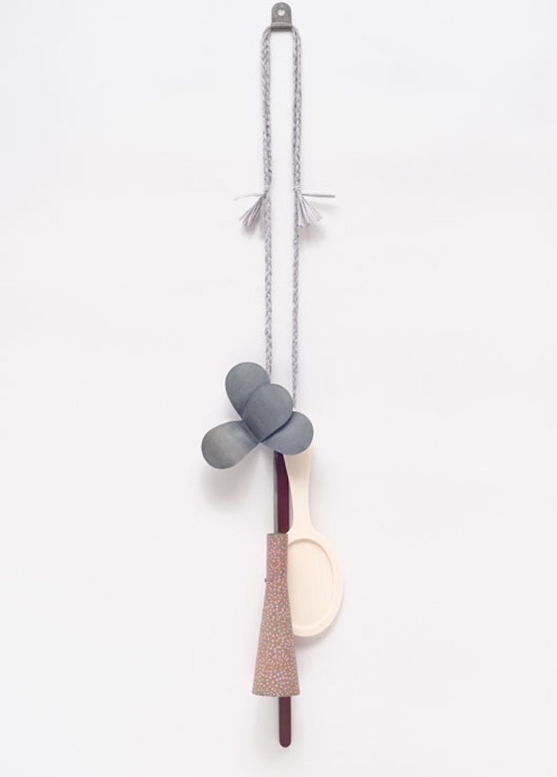 Wat Lucy maakt is nooit zomaar een ding, als een zeefje of een borsteltje, maar altijd een gastvrij ding dat zijn armen open houdt voor de eigenaar. Haar platte loodgrijze medaillons hebben een klare vorm van rond, taps of ovaal. Grote plakken om een trui te markeren en toch is er ruimte om een foto tussen te schuiven en die dicht bij het hart te dragen