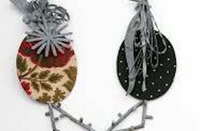 Jorunn gaf alle erfstukken (kralen, goud, borduursels) van de familie aan Lucy, ze wilde er leven in blazen door het te kunnen dragen. Lucy bracht alles bij elkaar in een grote sprankelende lap die als grote kraag te dragen is, zoals bij Nederlandse klederdrachten.Die ouderwetse kledingdracht vragen veel werk om het aan te trekken en het beperkt je in je bewegingen. Niemand wil meer een knellende klederdracht aan. Dat is niet meer van deze tijd.
