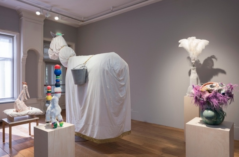 De parallel met het heden dringt zich op: ook op dit moment staat de wereld op vele plekken in brand, wreedheden als in de film van Tarkovsky vinden dagelijks plaats. Nederland is nog steeds een vreedzame plek, maar als ik om me heen kijk lijkt het of de mens niet in staat is om het geluk vast te houden, het goede lijkt hem voortdurend weer uit handen te glippen, ondanks ieders verlangen naar geluk, acceptatie en liefde. De vraag ’Hoe kunnen we leven?’ staat centraal in mijn werk. De urgentie van mijn werk ligt in het tegenwicht dat ik wil bieden aan de mens in al z’n onmacht en onhandigheid. Dit menselijk tekort staat centraal in mijn werk: een onnozel mannetje zonder armen en benen dat als een hulpeloze tuimelaar met een kokosnotensnoet ons bedremmeld aankijkt: ja wat nu? Wraakveulen met maar één stijgbeugel en dikke zachte oogkleppen op kan hooguit een slag in de lucht slaan. De wraak lost op. Het is luimig en aandoenlijk. Door humor te gebruiken probeer ik ieder met zachtheid naar zijn eigen falen en tekorten te laten kijken.