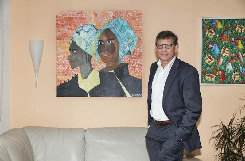 Als voorzitter van stadsdeel Zuidoost wilde ik mijn kantoor graag sfeervol inrichten en ik vroeg het Centrum Beeldende Kunst Zuidoost om werken die het karakter van de Bijlmer vangen. Dos muhe (Twee vrouwen), ja dat was het: hierin herkende ik direct de veelkleurigheid van het stadsdeel. De kunstenaar, Runny Margarita. komt uit Curaçao en dat zie je terug in de donkerzwarte vlakken en warme felle kleuren. Zulk kleurgebruik zie je niet vaak in westerse kunst. Het doet me denken aan een tropische omgeving waar je vertrouwd mee bent en die je toch mist. Typerend voor Margarita is het dik gepleisterde reliëf, alsof het gevlochten is. Zo origineel en innemend. De twee vrouwenfiguren lijken verstild, maar hebben tegelijk een zelfbewuste blik. Ik denk dat ik er intuïtief iets van mijn twee dochters in heb herkend.