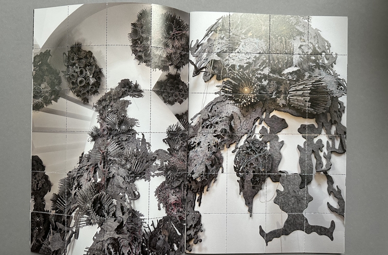Nature is unrelenting and vaster than we humans want to see; humankind thinks it can dominate everything. It means we risk losing that sense of the uncontrollable. We no longer see the danger. A volcano that erupts unexpectedly despite all the predictions. Getting lost in a real forest. What’s more, we prefer to follow the signs in the landscaped forest. And that puts an end to wonder, to unknown horizons. The work makes our eyes pop out of our head, ‘wonder’ is expressing it too mildly: all those plastic tie wraps that suddenly become part of a sort of plant, (almost) a living organism. Perhaps a bean tree will shoot up in my tiny garden. Perhaps a body snatcher is living unnoticed under my bed.