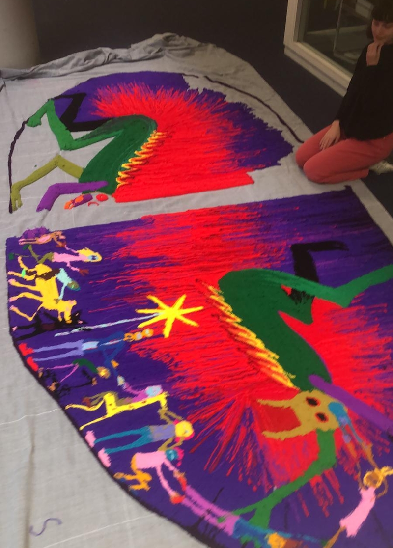 Afra Eisma (1993) liet zich inspireren door Audre Lorde’s poëtische teksten en creëerde intieme werelden die barsten van kleur en energie. Haar werk bestaat uit getufte tapijten, keramiek, papier maché en textiel die leiden tot stralende tactiele installaties waarin verbinding en generositeit centraal staan. Het was haar eerste museale solotentoonstelling.