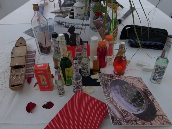 Jungerman richt deze tafel als een rituele handeling samen in met de Winti priesteres Nana Efua die de tafel tevens inzegent.