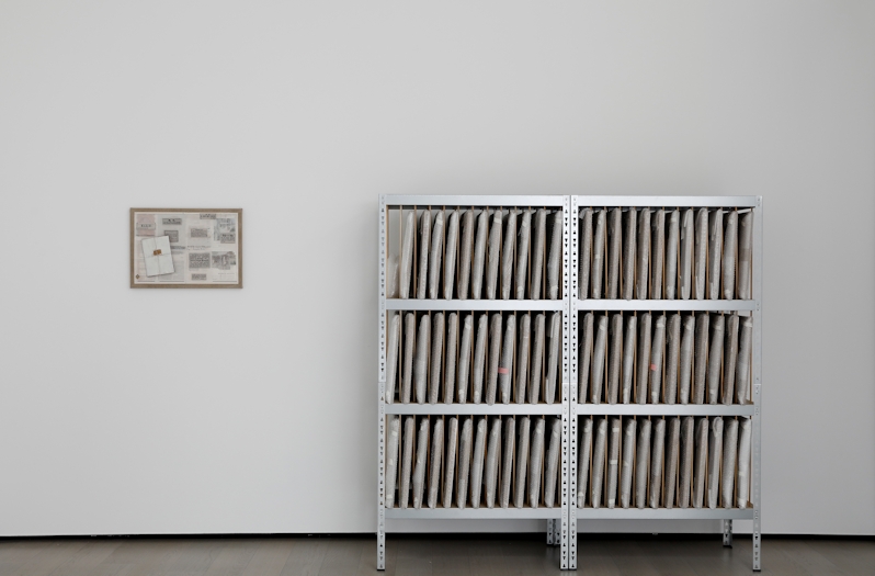 Tegenover het werk van Wang liggen op een verhoging drie tekeningen van de in 2002 overleden Roemeense kunstenaar Florin Mitroi. Ten Cate: ‘Hanne had werk van hem gezien op Art Basel en is naar Boekarest gevlogen om met zijn weduwe in het atelier zijn werk te bekijken. Mitroi was docent op de kunstacademie, zijn eigen werk was nooit buiten zijn atelier geweest. Zelfs als hij zijn studenten uitnodigde in zijn atelier, legde hij doeken over zijn werk. Hij was een stille activist, hij heeft zich eerst verzet tegen Ceausescu en later tegen het kapitalisme, en als je voor zijn werk staat, voel je die geschiedenis. We hebben ervoor gekozen het werk hier niet op te hangen, maar neer te zetten zoals het ook op zijn atelier stond: op de grond, tegen elkaar aan, wie wil kan er doorheen bladeren.’